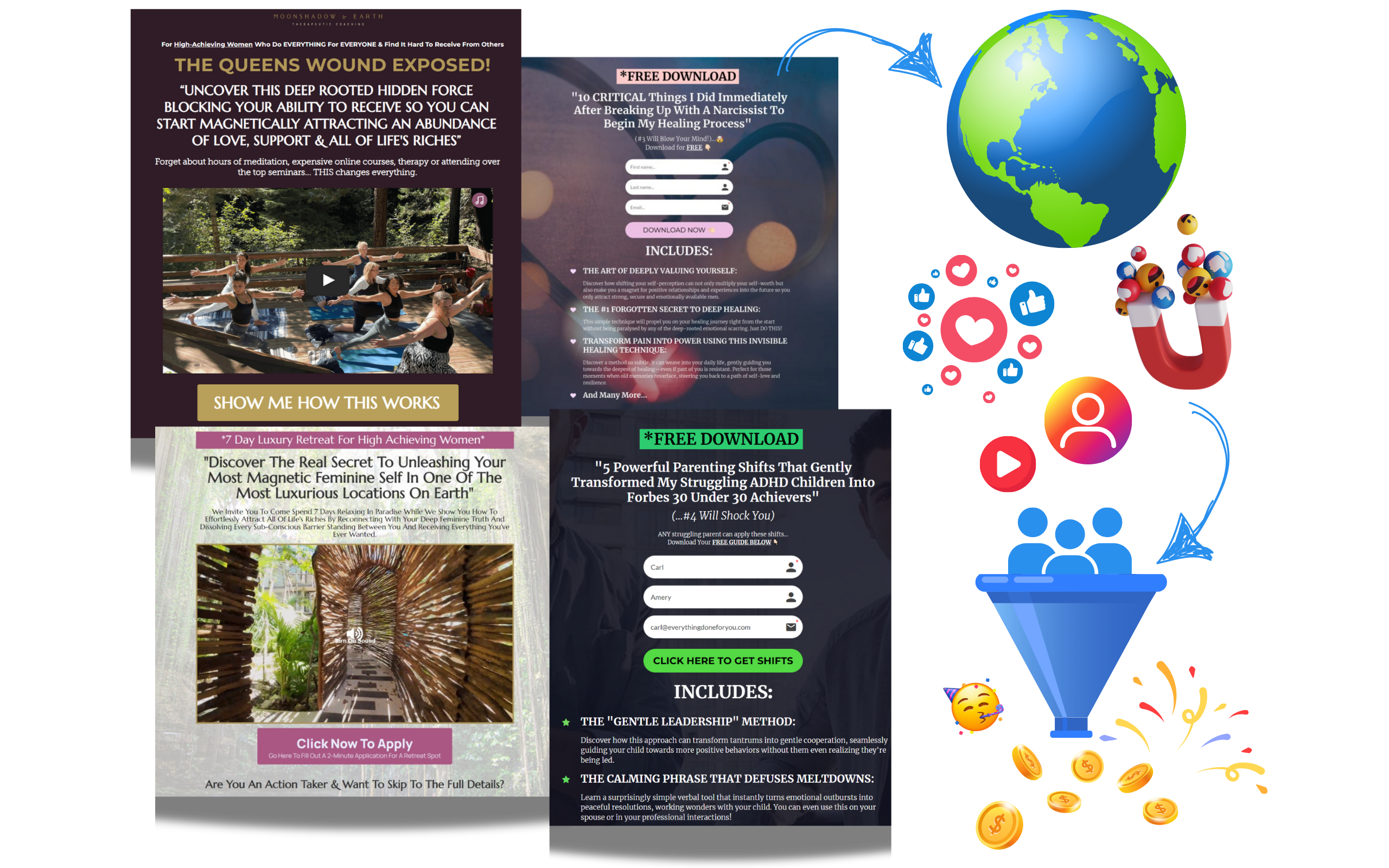 Launch a struggling life coaching service from 1-2 trickling leads per month to over 500+ per month by installing a client attraction system that does all the heavy lifting and brings in daily customers on auto-pilot while she focuses on her clients.