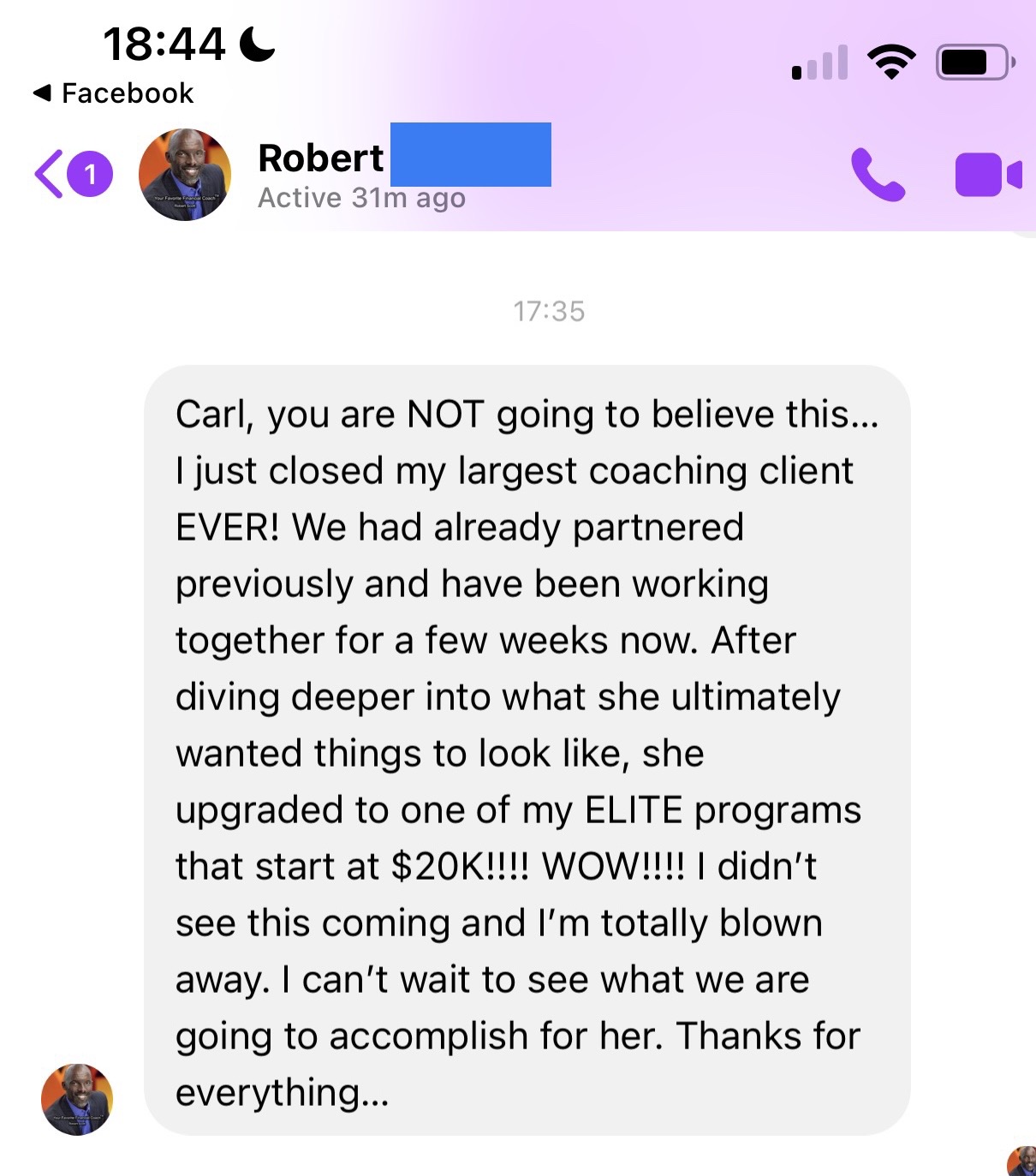 From 2018 -2022 I was Co-Founder Of Clients In Abundance (A Coaching Company) where I specialized in Sales & Marketing and was responsible for over 7 figures in revenue within the first 6 months using this exact system.